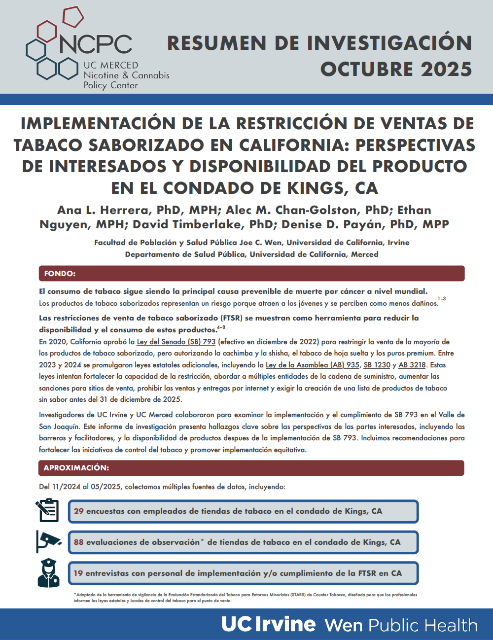 This webinar was funded by the Tobacco-Related Disease Research Program (TRDRP): TRDRP 2024 - Tobacco Policy Research Centers Award (#T34PC8131). Content is solely the responsibility of the authors, and does not necessarily represent the views of the TRDRP.